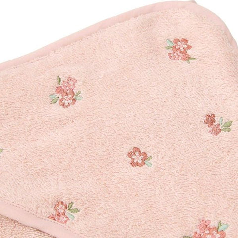 Badcape Geborduurd Blossom van Little Dutch. Maat: 75 x 75 cm. Wikkel je kleintje in warmte en zachtheid met deze kaphanddoek. Gemaakt van 100% biologisch katoenen badstof voor een heerlijk zacht en knus gevoel. Ontworpen voor zowel praktisch gebruik als charme, zorgt de zachte capuchon voor geborgenheid en comfort na het badderen. De handdoek heeft een mooie lichtroze Blossom kleur en de capuchon is versierd met schattige geborduurde bloemetjes uit de Fairy Garden-collectie.