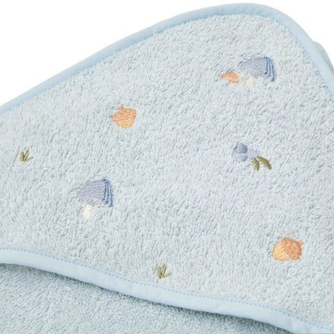 Badcape Geborduurd Blue Forest Friends van Little Dutch. Maat: 75 x 75 cm. Wikkel je kleintje in warmte en zachtheid met deze kaphanddoek. Gemaakt van 100% biologisch katoenen badstof voor een heerlijk zacht en knus gevoel. Ontworpen voor zowel praktisch gebruik als charme, zorgt de zachte capuchon voor geborgenheid en comfort na het badderen. De handdoek heeft een mooie lichtblauwe kleur en de capuchon is versierd met schattige geborduurde figuurtjes uit de Forest Friends-collectie.