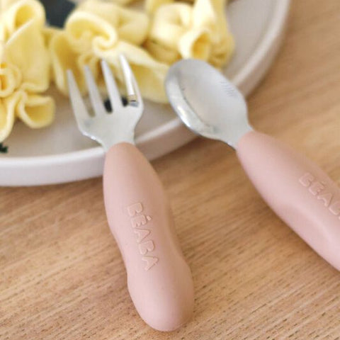 Kenmerken van de set van 2 roestvrijstalen oefenbestek van Béaba: