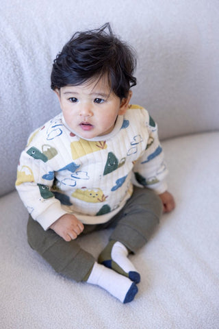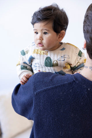 Deze sweater is van het merk Feetje. De trui heeft knoopjes op de schouder. Zo kleed je je kindje makkelijk aan en uit.