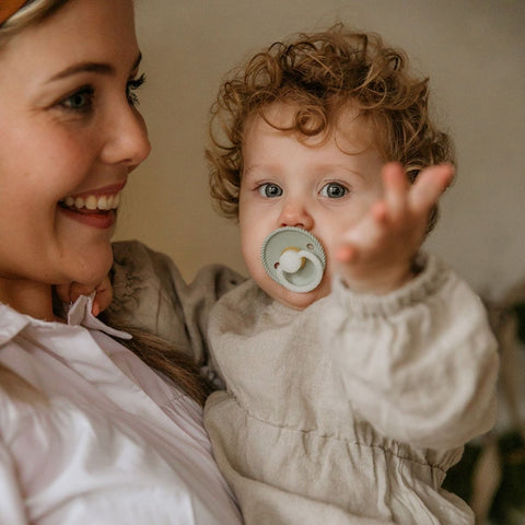 De naar buiten gebogen fopspeen houdt de speen weg van de tere huid van je baby en biedt bescherming met luchtgaten en een veiligheidshandgreep. FRIGG fopspenen zijn verkrijgbaar in verschillende zachte kleuren en vormen een mooie aanvulling op je collectie babybenodigdheden.