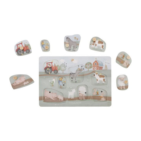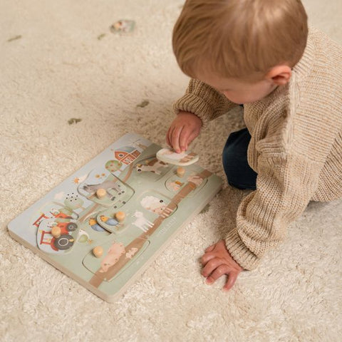 Als je het diertje terugplaatst op het juiste plekje hoor je een bijpassend geluidje. Deze puzzel met 7 diertjes en een tractor met geluiden bevordert de oog- hand coördinatie en stimuleert de woordenschat van je kindje.