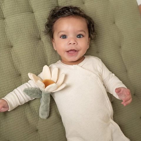Rammel deze magische bloem! Als je er mee speelt hoor je een plezierig geluidje.De rammelaar stimuleert de hand-oogcoördinatie, is van heerlijk zacht materiaal gemaakt en kan makkelijk door kleine kinderhandjes vastgepakt worden.