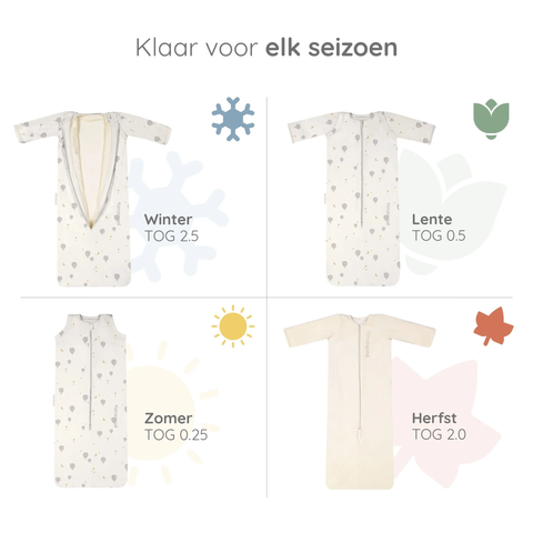 De 4-seizoensslaapzak helpt je kindje sneller in slaap te vallen, langer te slapen en uitgerust wakker te worden. Nacht na nacht, seizoen na seizoen!