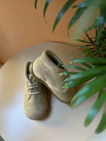 In soepel leder (nubuck). Ook binnenin volledig in leder.