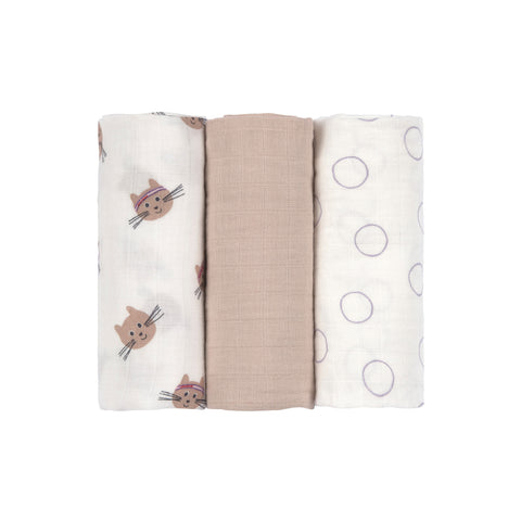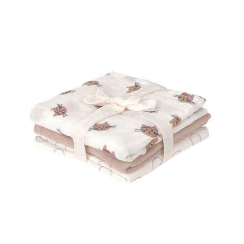 De drie multifunctionele gaasdoeken van 60 x 60 cm van LÄSSIG zijn ademend en onderhoudsvriendelijk.