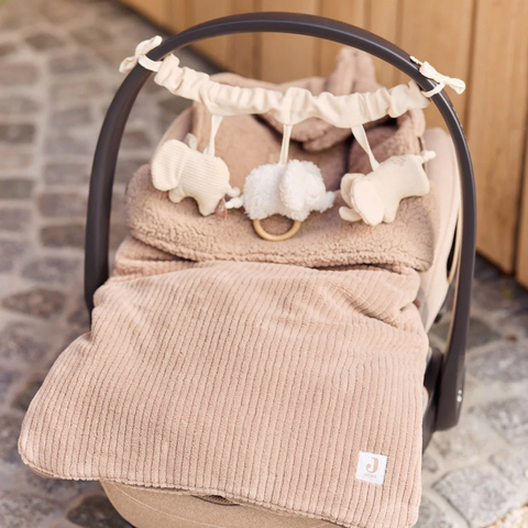 Deze vrolijke wagenspanner is versierd met drie schattige olifantjes, elk met een uniek ontwerp. Er is een velours olifant in wit, een olifant van ribstof, en een effen olifantje met schattige ruit patroon oren. De olifantjes zijn met elkaar verbonden en kunnen gemakkelijk aan de kinderwagen bevestigd worden. Ideaal voor onderweg!